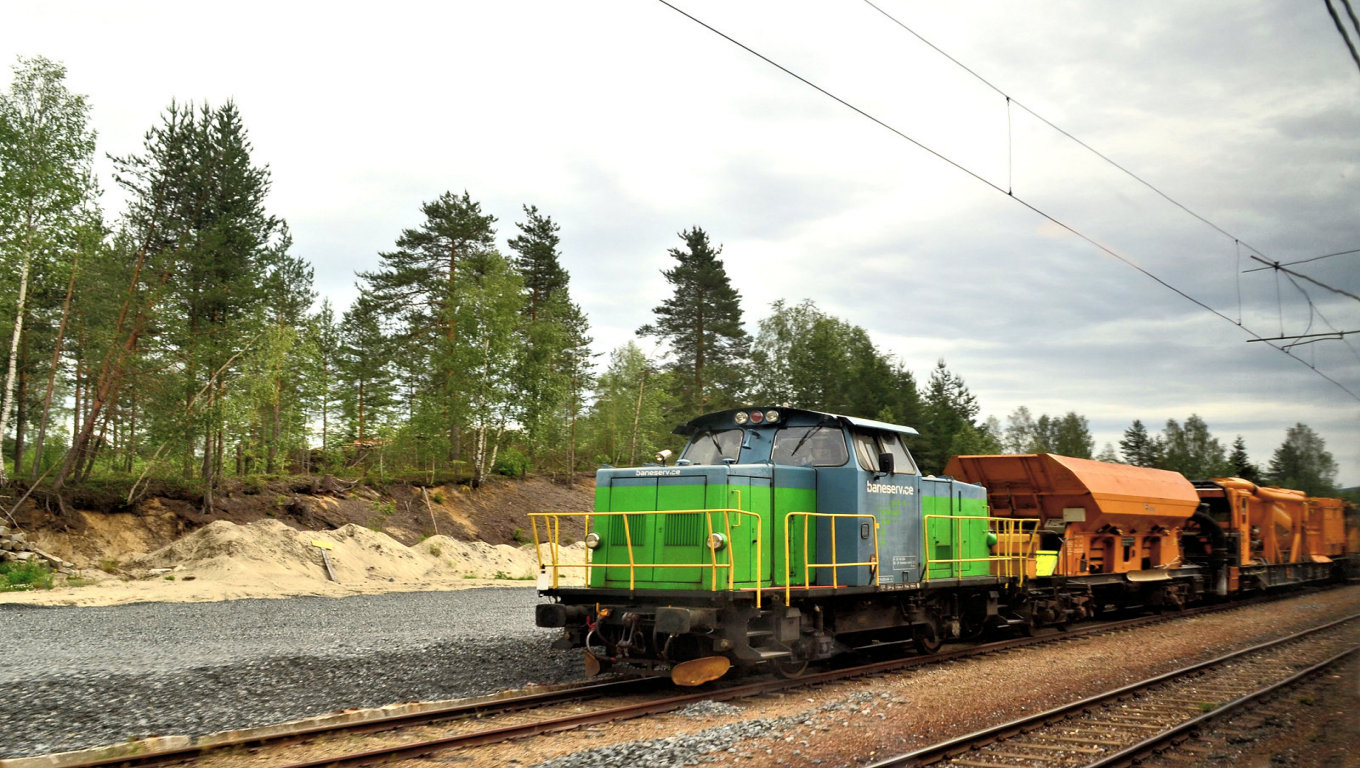 | Bergen a Oslo. Cruzada con tren de trabajo (lastre). |